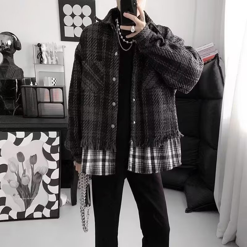 2024春と秋の襟付きコート男性カジュアルファッションブランドのごろつきが高い街の日系レトロな機関車のデザイン感のあるジャケット
