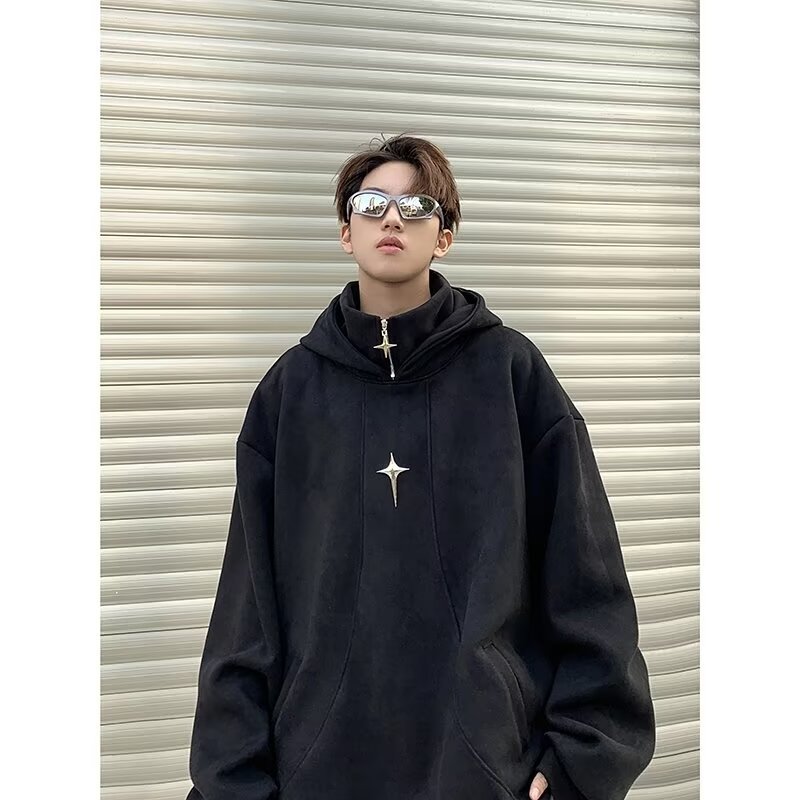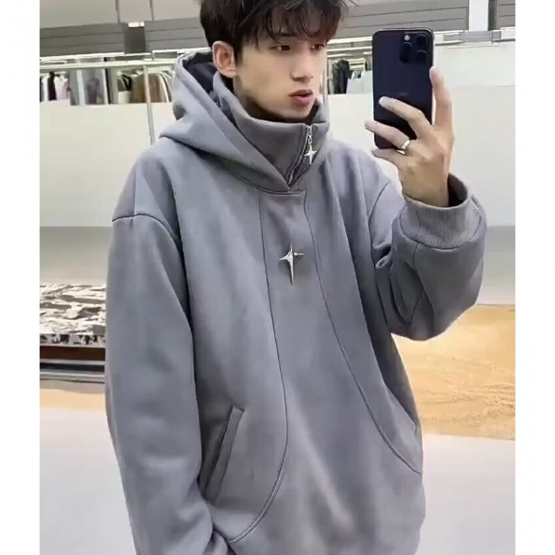 Ins超火の高襟のパーカーの男性は帽子と頭をかぶせてゆったりしています。