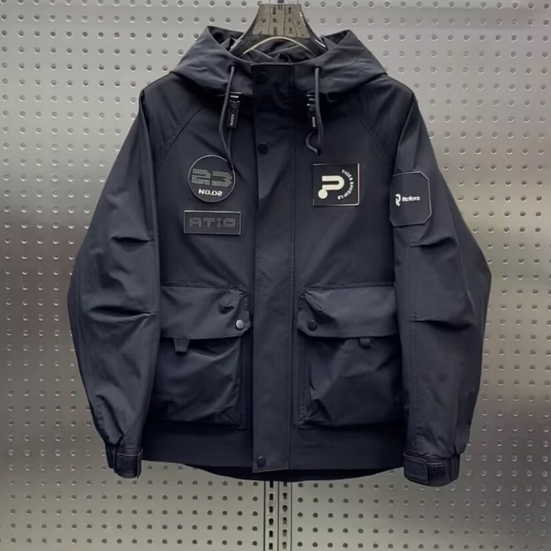 冬には戸外保温工装綿服男性カジュアルフード付きポケット綿服韓国版ゆるいカジュアルコートを貼る