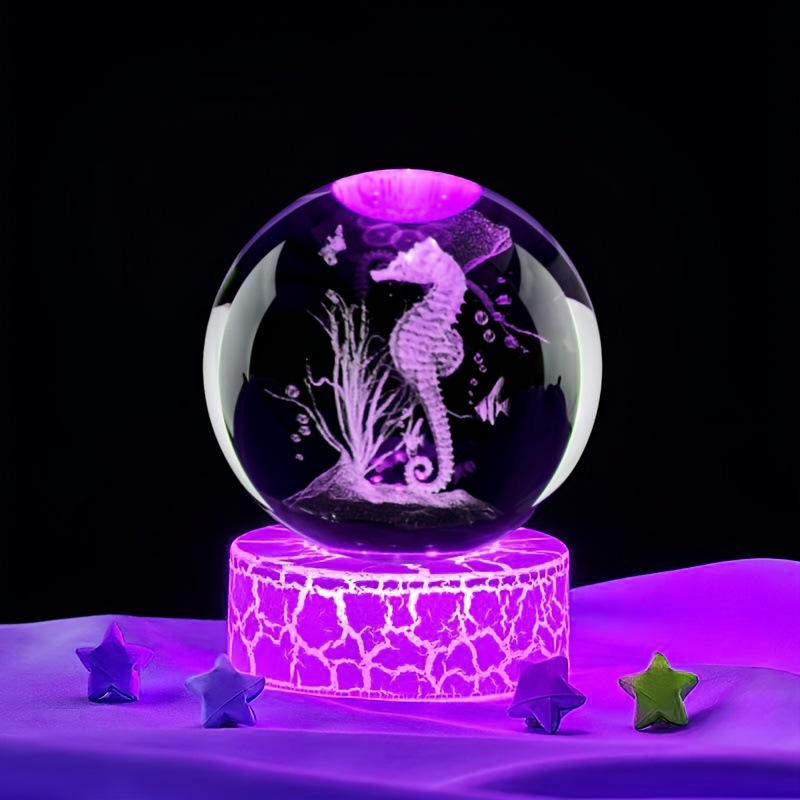 カラフルなひび割れ発光ベースクリスタルボール 3D レーザー彫刻タツノオトシゴクリエイティブギフトデスクトップ装飾品ナイトライト