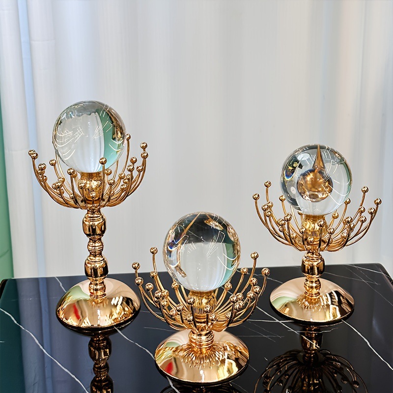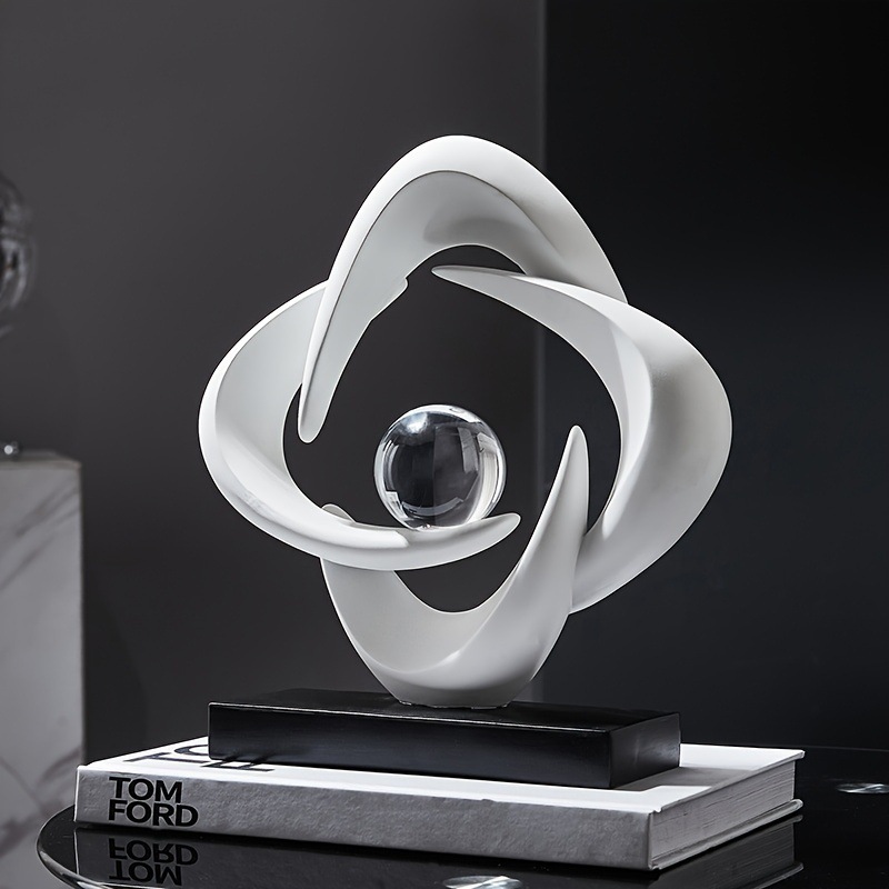 クリスタルボール付きのモダンな抽象樹脂像 1 個 | 家庭、オフィス、ホリデーデコレーションに最適