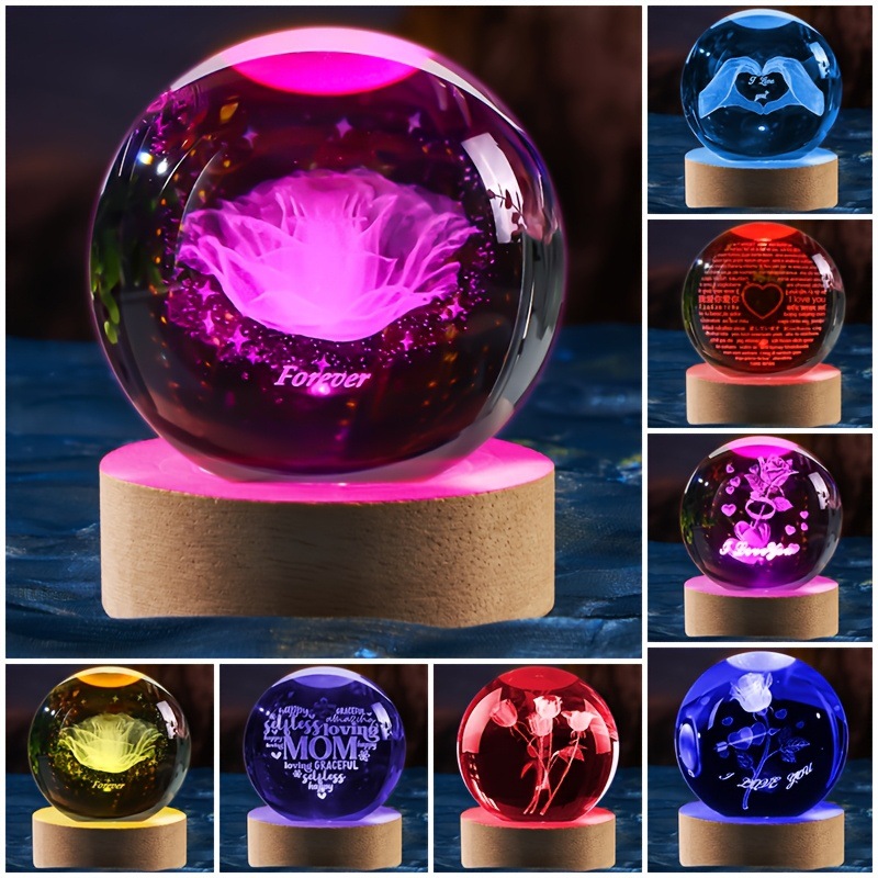 1 個バレンタインデーローズクリスタルボールナイトライト - レーザー彫刻 | LOVE DESIGN | 愛をテーマにした装飾