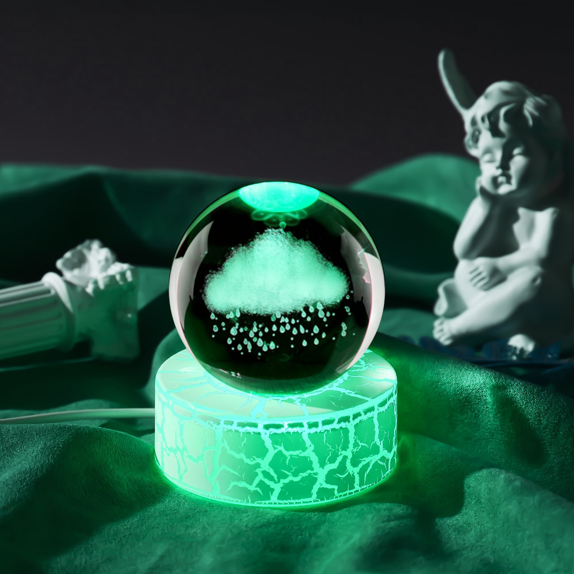 カラフルなひび割れ発光ベースクリスタルボール 3D レーザー彫刻雨の日クリエイティブギフトデスクトップ装飾品