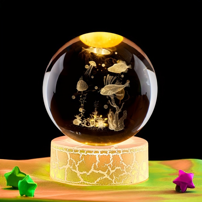 カラーライトクラックル発光ベースクリスタルボール 3D 彫刻水中世界クリエイティブギフトデスクトップ装飾品ナイトライトギフト