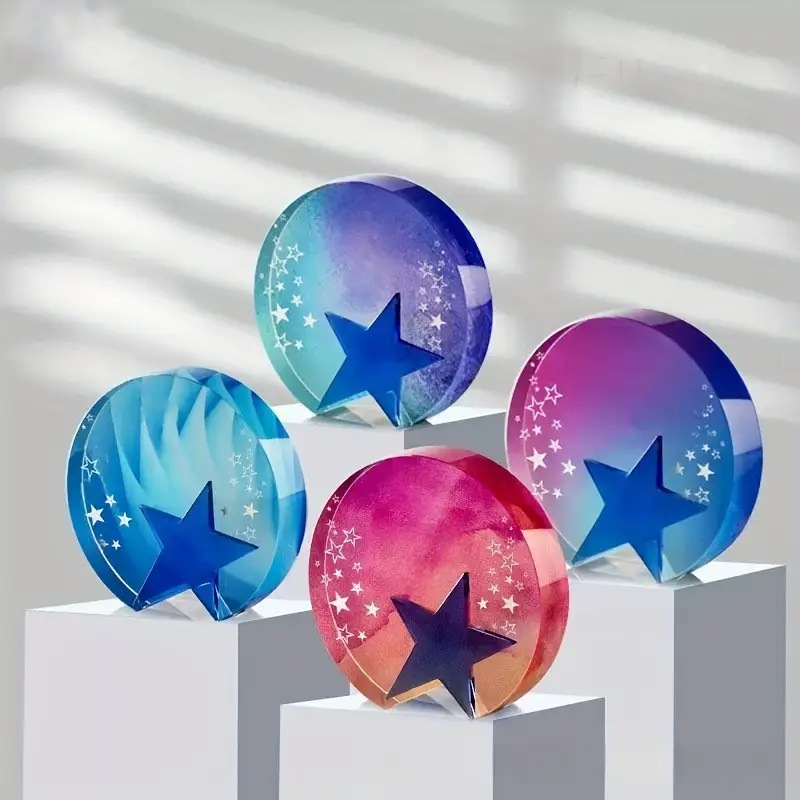 カラー印刷とレーザー彫刻されたクリスタルトロフィー - エレガントな星型デザインの従業員賞賛記念ギフト
