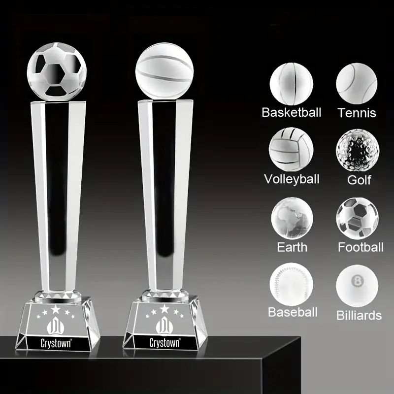 彫刻テキストスポーツ競技クリスタルサッカーバスケットボールトロフィーリーグスポーツガラス賞賞品記念