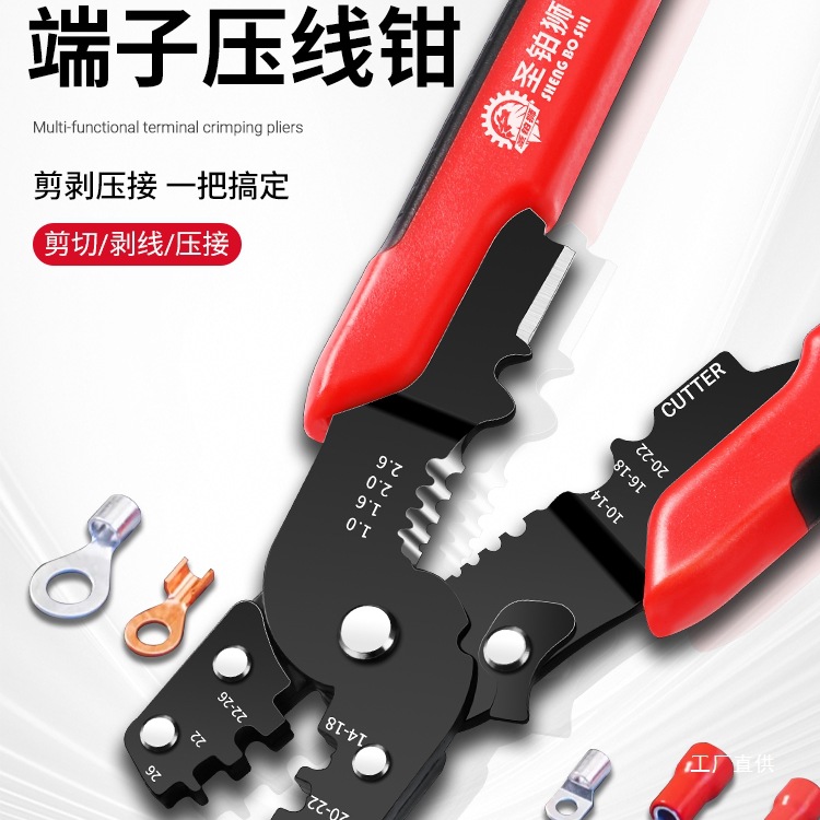 多機能圧線ペンチ剥線ハサミ電気工専用冷圧OTUT裸配線端子手動圧接八極