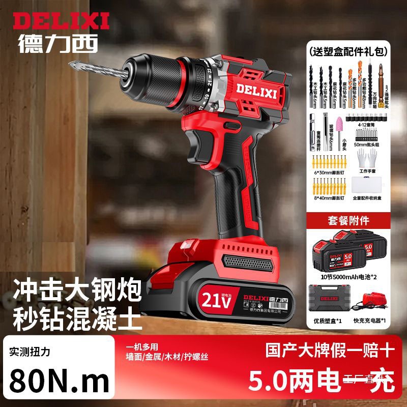 徳力西ブラシレス懐中電灯ドリル衝撃リチウム電気ドリル充電式ハンドドリル多機能家庭用電動ドライバー八極