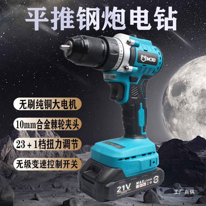 ブラシレス鋼砲手動ドリル充電平押しリチウム電気ドリルハイパワー電動ドライバー電動工具電気ドリル八極