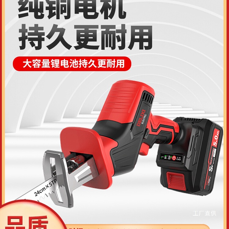 Delixi ブラシレスリチウムイオンソーハンマーソー家庭用小型ハンドヘルド電動ソー充電式伐採 8 極