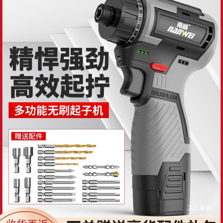 南威ブラシレスリチウム電気衝撃ドライバー家庭用電動ドライバー電気ドリル充電式ドライバー電気起八極