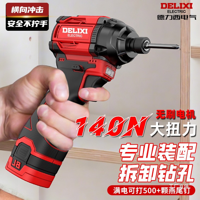 Delixi ブラシレスインパクトドライバー家庭用小型電動バッチ電動ドライバー充電式ハンドドリルリチウム電池 8 極