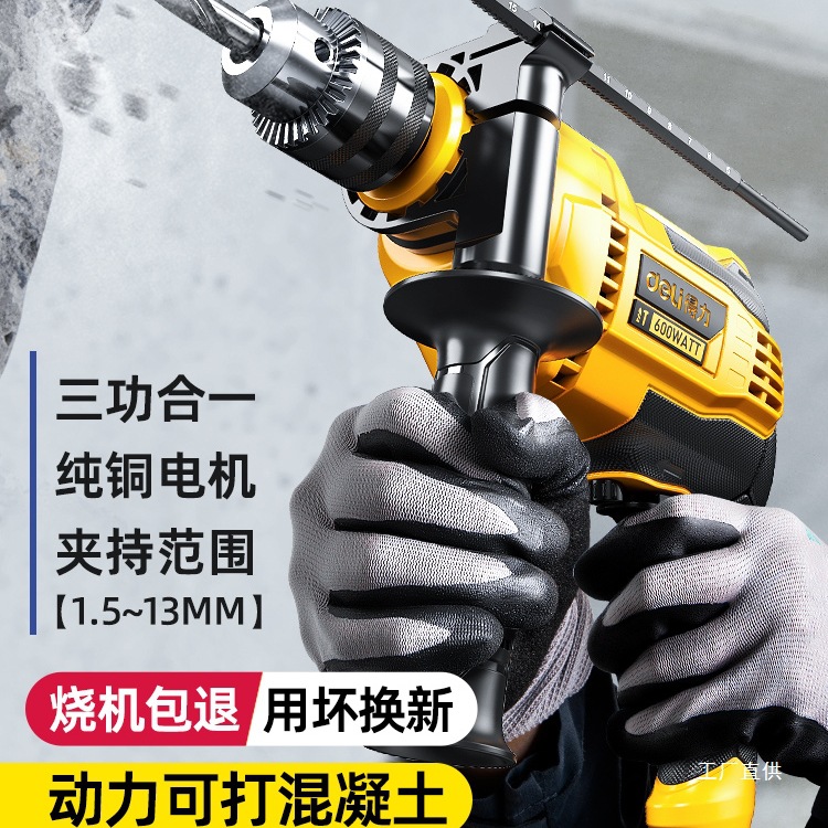 有力なインパクトドリル家庭用ハンドドリル多機能ピストルドリル小型ハンマー電気回転ドリル壁電動八極
