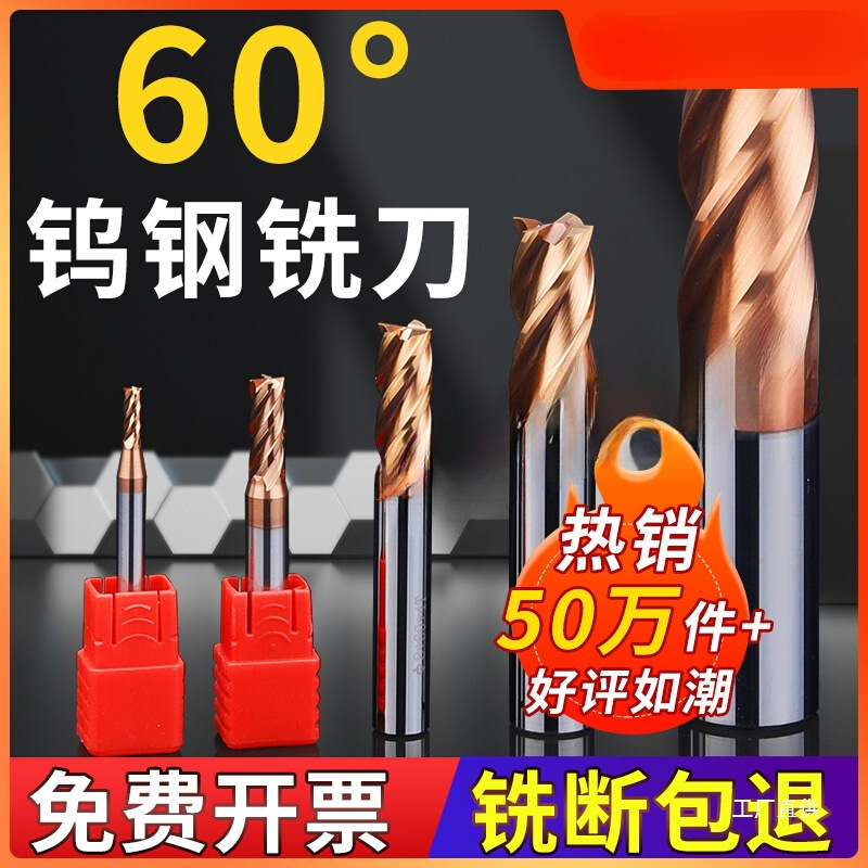 4枚刃超硬タングステン鋼エンドミル、4枚刃丸ノーズ延長キー溝CNC工具、55度平底2枚刃8極