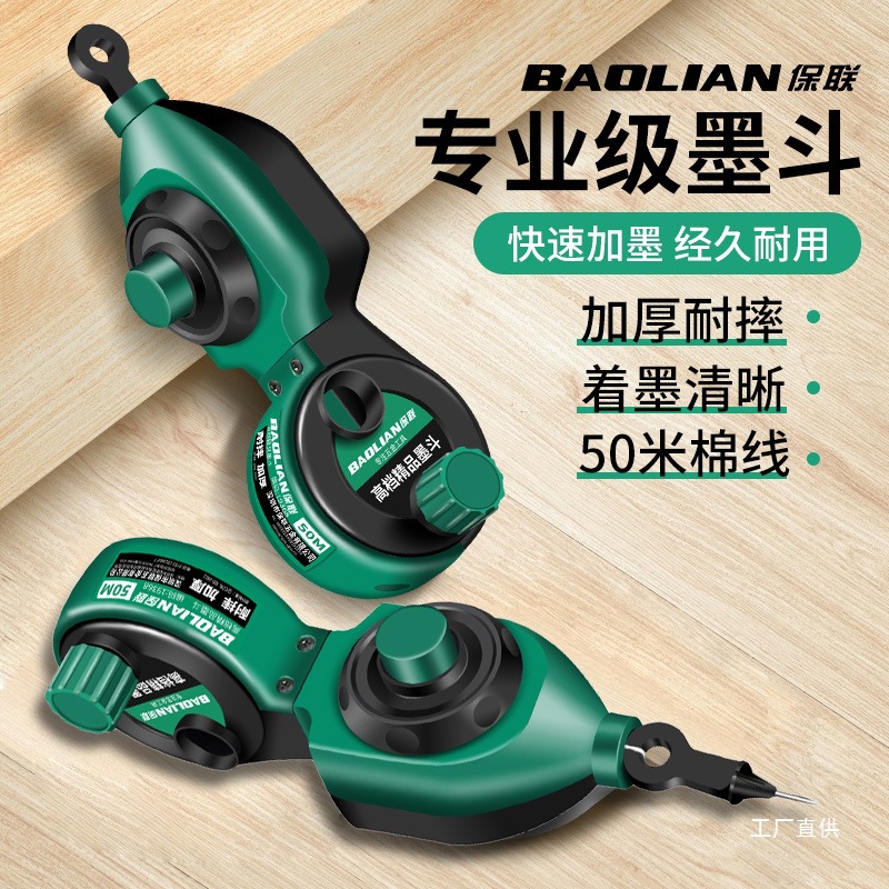 Baolian Ink Bucket 建設現場のラインレイアウト用の特別な木工ハンドクランク木製バケット ラインレイアウトアーティファクト 落下防止ライン描画インクツール 8極
