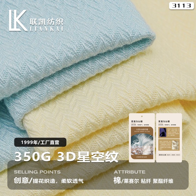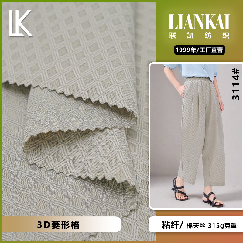 3D菱形レセル天糸綿315g春夏涼感布帛格子布ファッション無弾ズボン生地