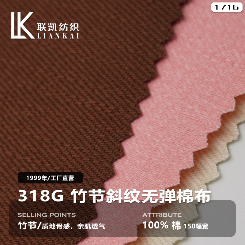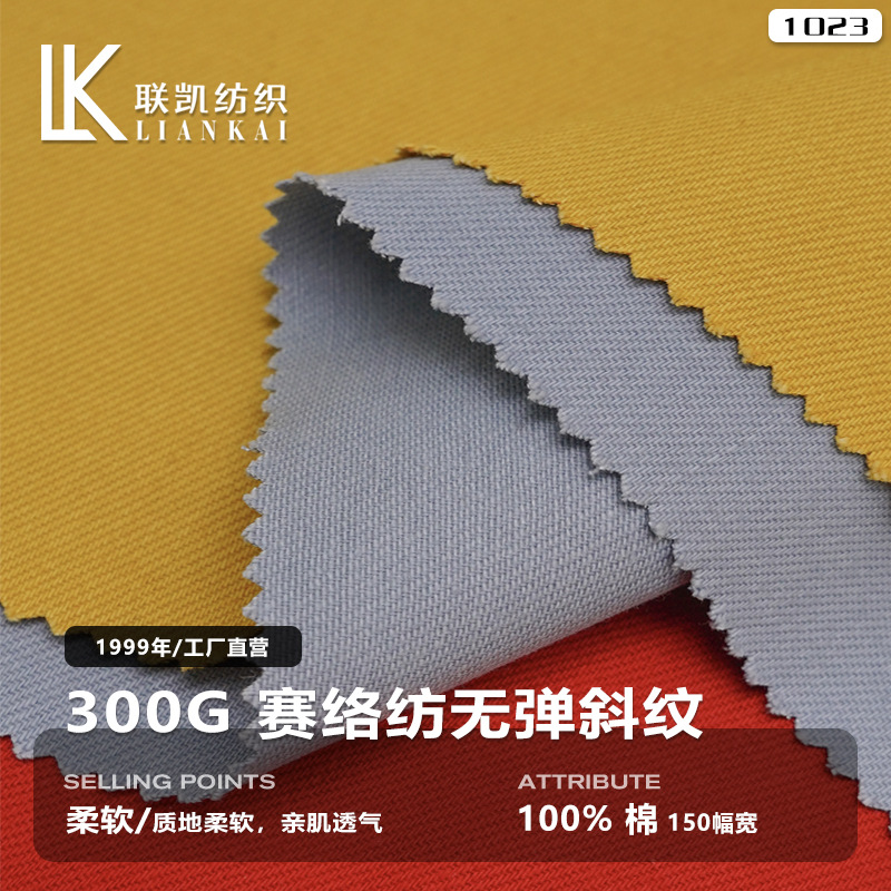 純綿織物パンツ生地 340G 厚手無伸縮左斜斜織綿生地 全工程水洗綿生地