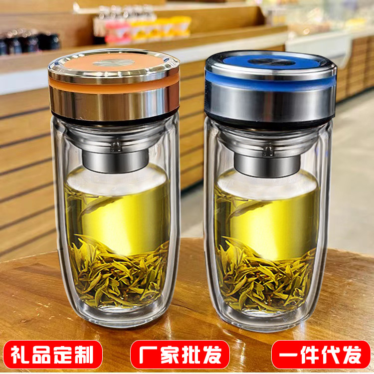二重層ガラス高温耐性ウォーターカップ火傷防止男性と女性の茶水分離断熱ビジネスカーグースエッグカップ卸売