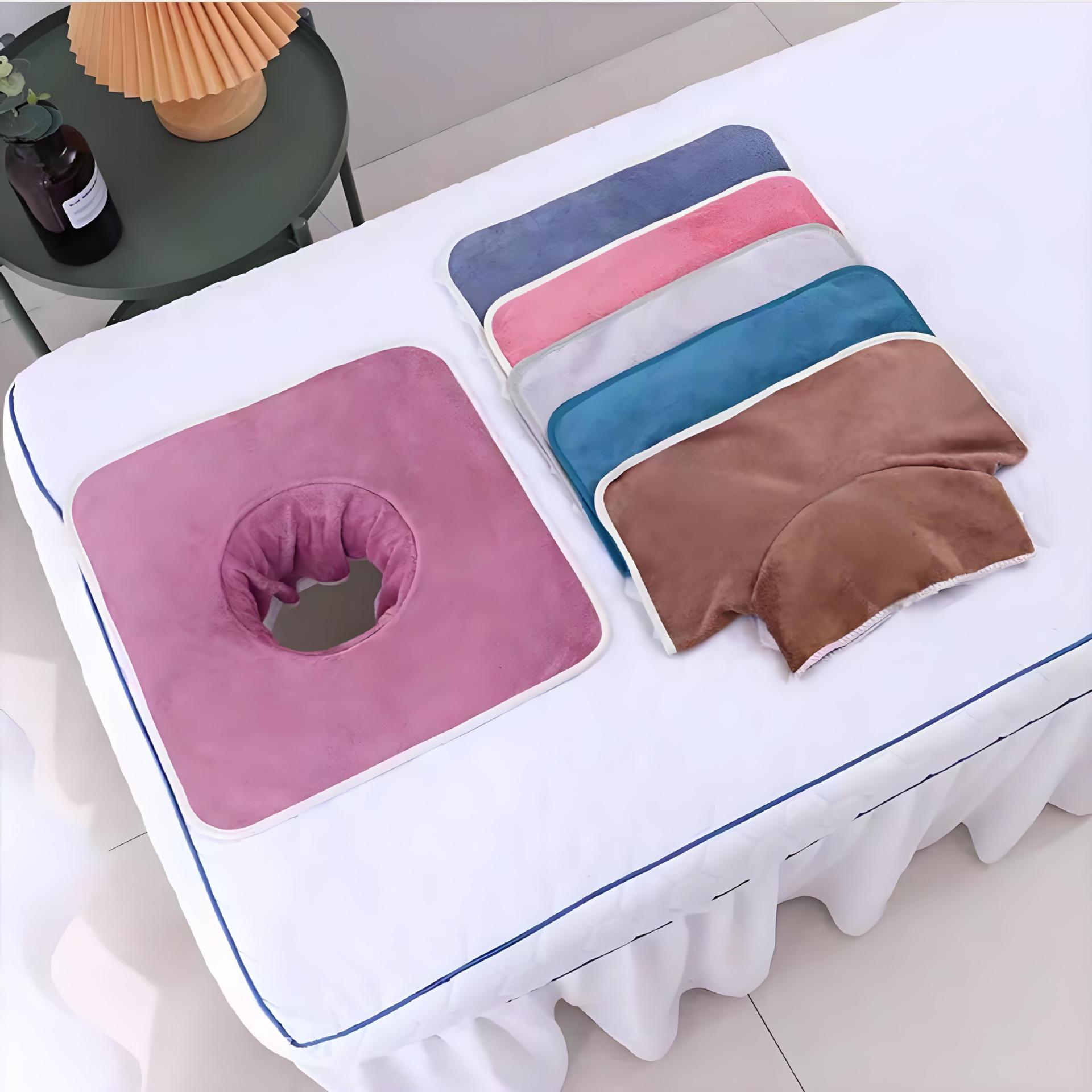 穴付きフェイシャルタオル、ビューティーサロンベッドサイドタオル、柔らかく吸水性のあるマッサージマッサージマット、フェイシャルタオル、ベッドタオル、ロゴ印刷可能
