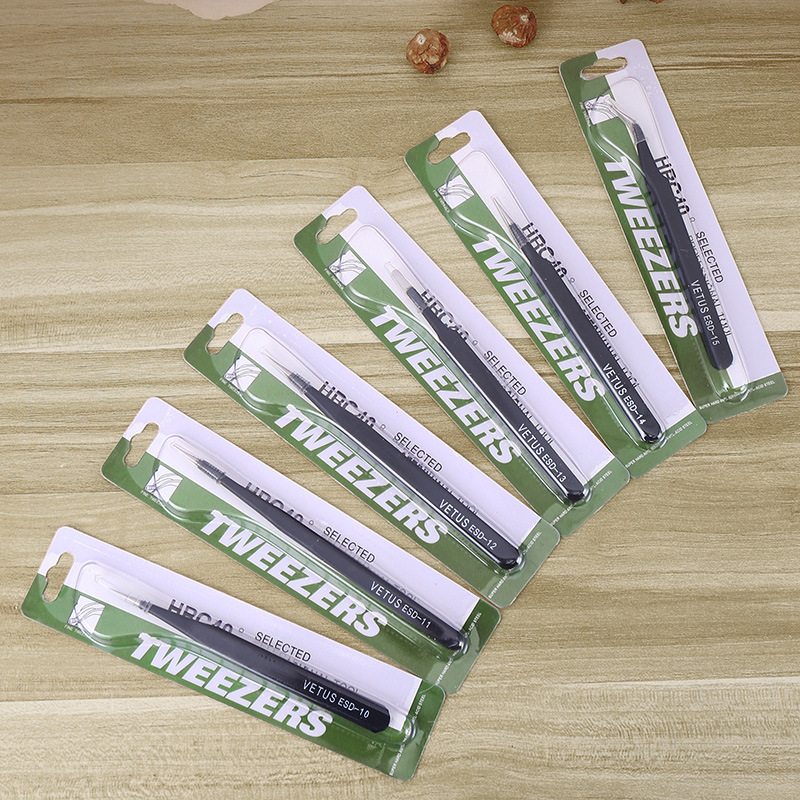 VETUS-ESD黒ステンレスピンセット縁なし加工ピンセット軽量で耐久性のある高精度工具クリップ