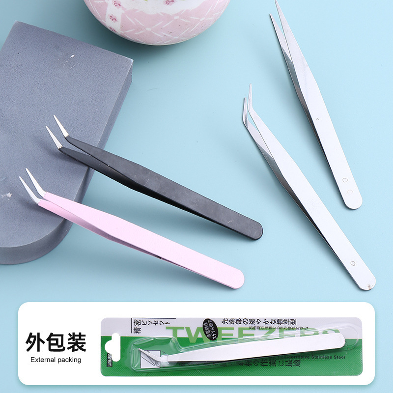 113mmピンセットまつげピンセットdiyつけまつげステンレス包装工紙カード包装エルボーツールカラーセット