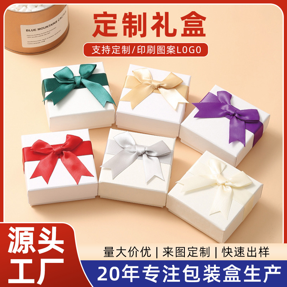 天地の蓋の蝶結びの四角形のブレスレットのピアスの腕時計のアクセサリーの収納箱のピアスのネックレスの包装箱の指輪の箱