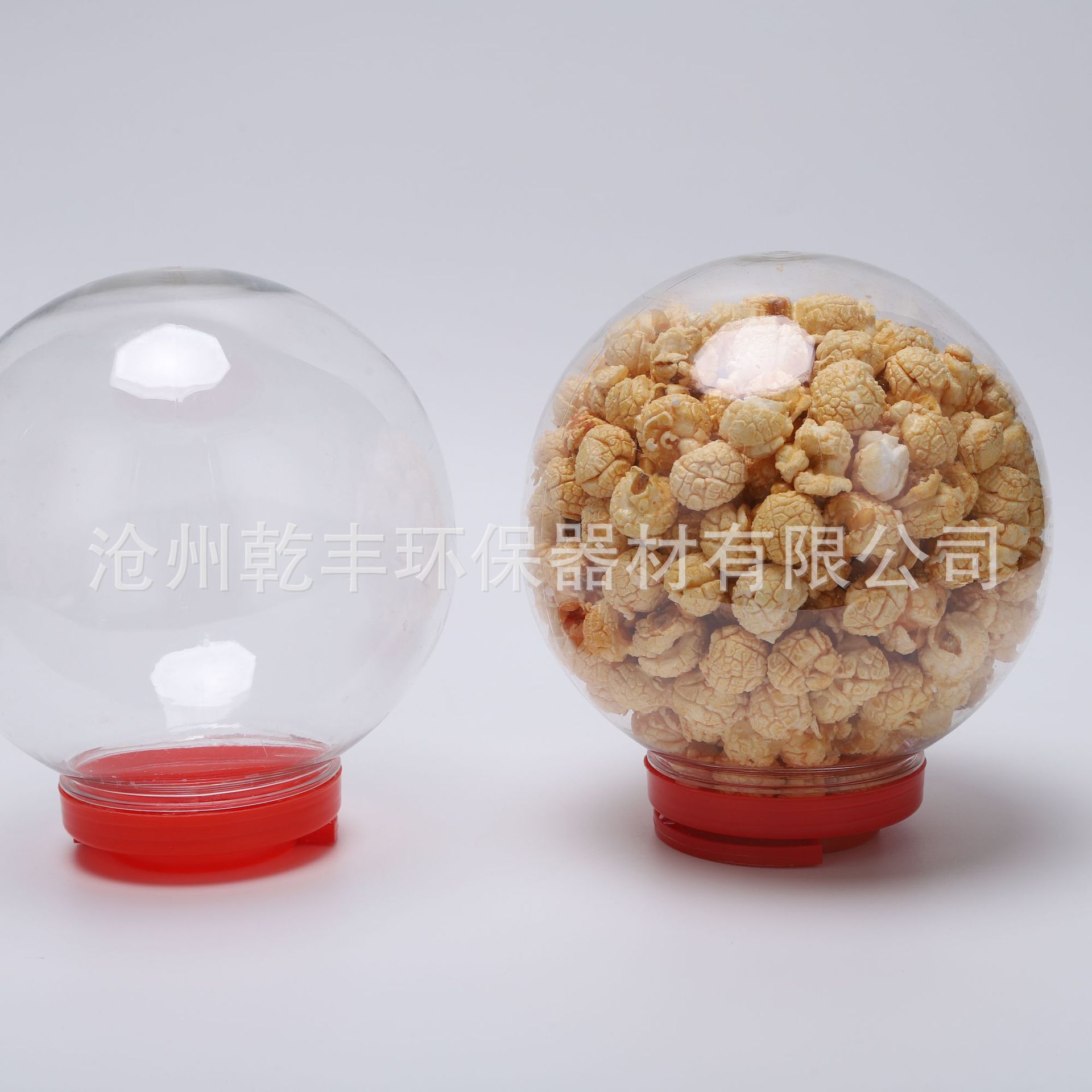 新しいペットボール型ポップコーンバケツグローブ包装缶サッカーバスケットボールハンドル付き透明プラスチック食品缶