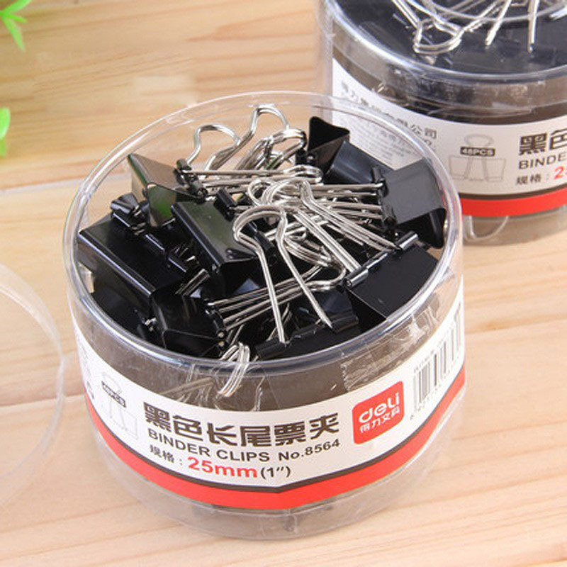 得力8564ロングテールクリップ25mm黒ロングテールクリップファイルのチケットクリップ48個セット資料クリップアリピン