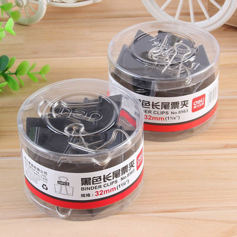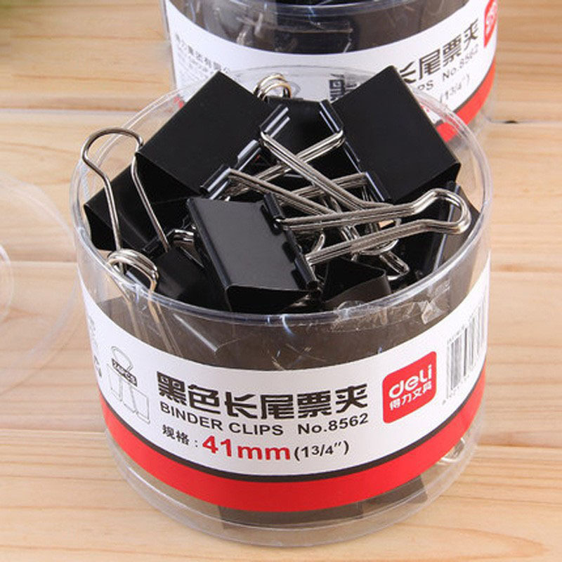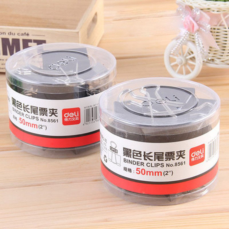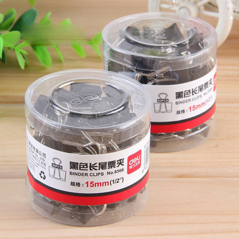 得力8566アリクリップ15mm黒色長尾クリップ書類チケットクリップ60個筒装6号資料用紙クリップ