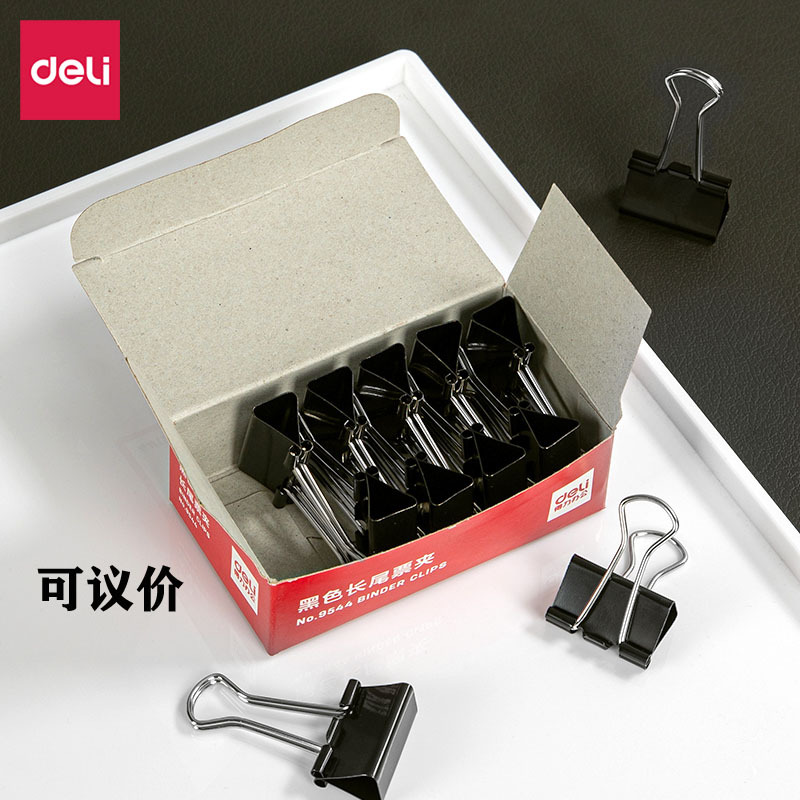 得力9541長尾クリップ51mm金属黒色反尾クリップアリクリップ事務文房具学生12本