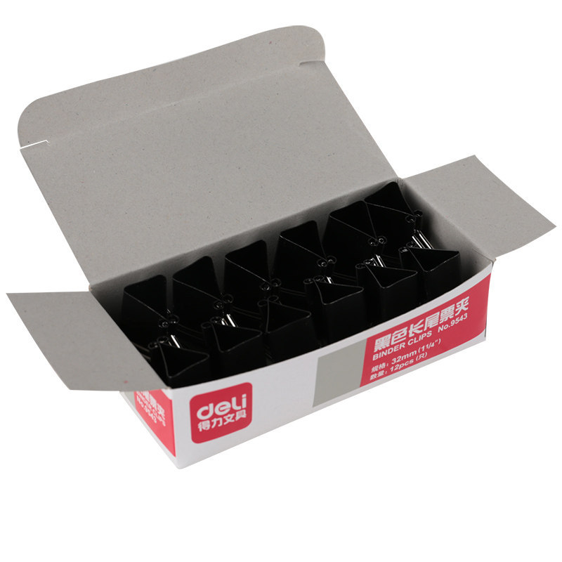 得力9543長尾クリップ32mm黒札クリップアリクリップ資料クリップデスクトップオフィス12本