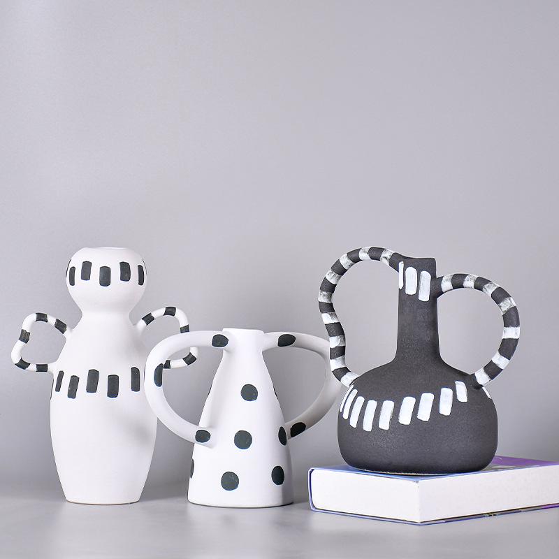 新品白黒手描きセラミック花瓶玄関リビング生け花モダン北欧ホテルサンプル间置物