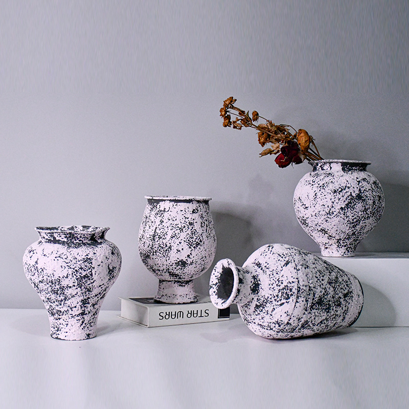 白黒艶消し釉薬現代シンプル創意陶磁器花器見本単軟装置物生け花工芸装飾品