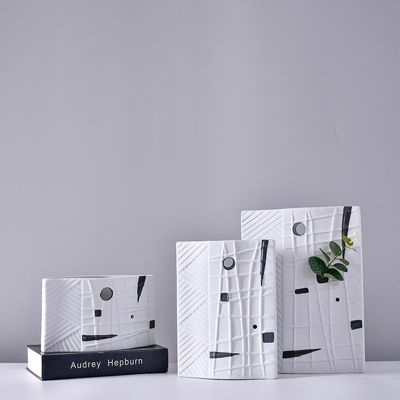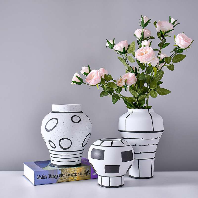 白黒艶消し釉薬現代シンプル創意陶磁器花器見本単軟装置物生け花工芸装飾品