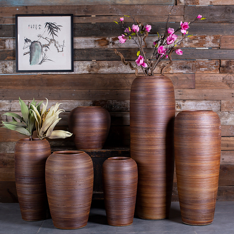 レトロ陶芸風着地大花瓶民宿室内装飾生け花屋外水培土培樹花器