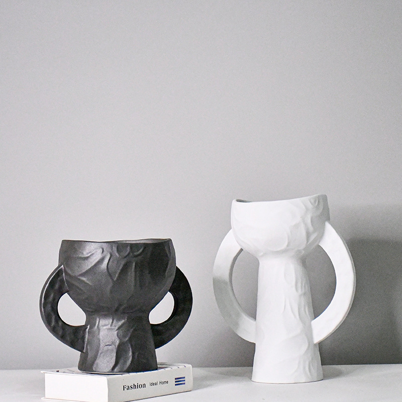 黒白シンプルダブル耳セラミック花瓶モダンクリエイティブホームリビングルーム生け花ソフト装飾品置物