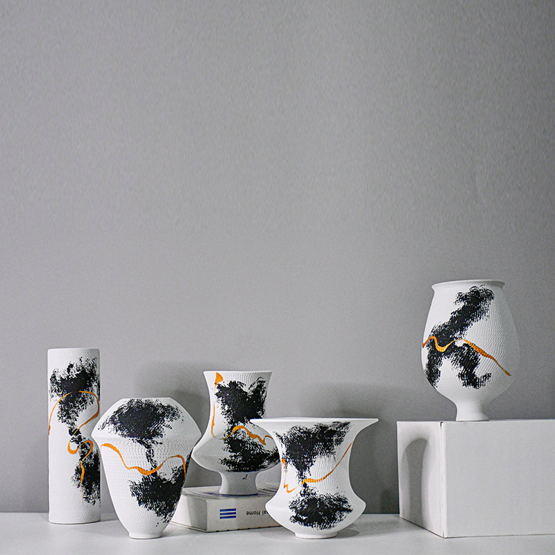 墨彩雲霧陶磁器花器セット中国式現代シンプルデザイン本棚背景キャビネット装飾置物花瓶