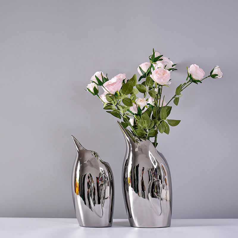 メッキ銀色ペンギン創意陶磁器花瓶現代シンプル軽豪華サンプルプレート間リビングテーブル生け花花器
