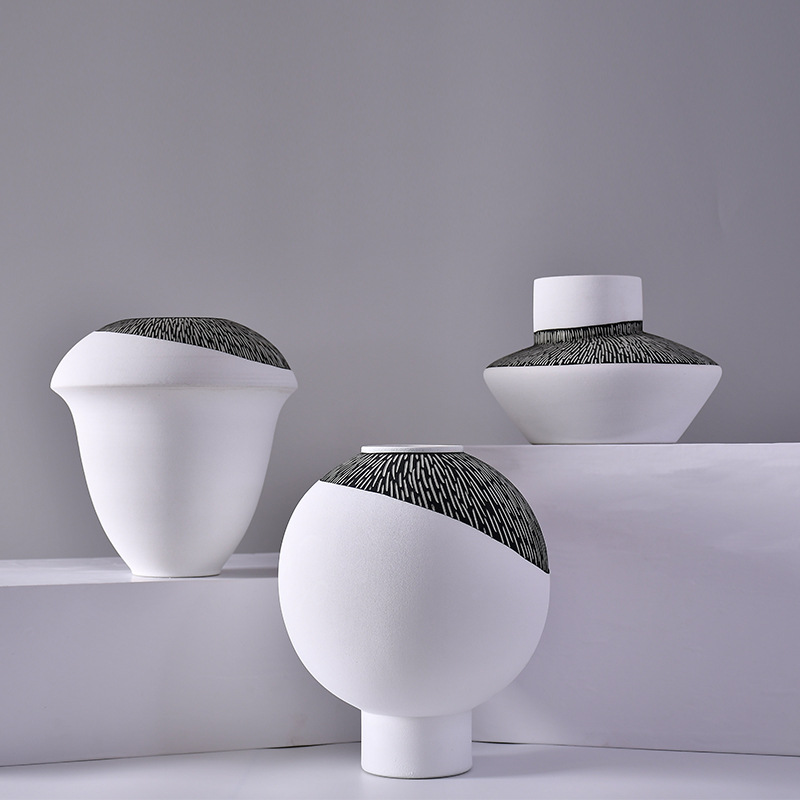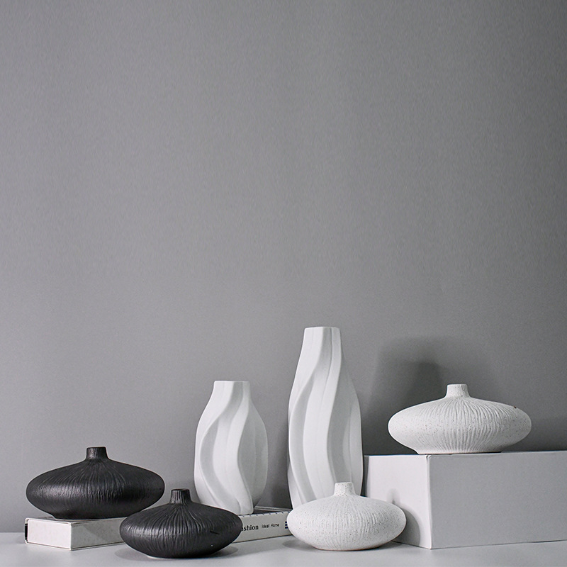 シンプルな現代器型白黒陶磁器花器新中国式現代シンプルな机の本棚の酒場の花挿し置物