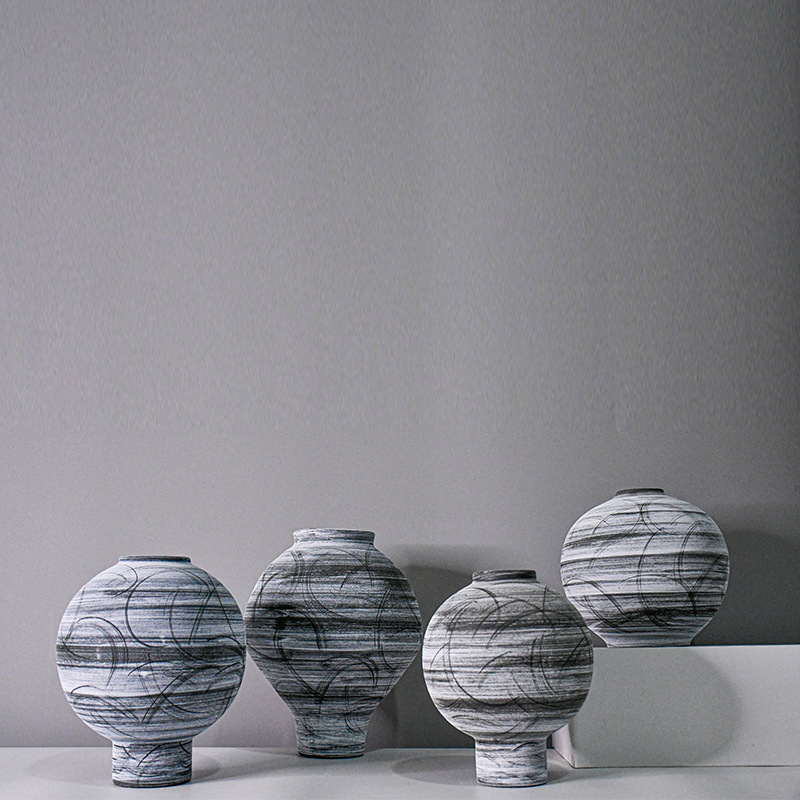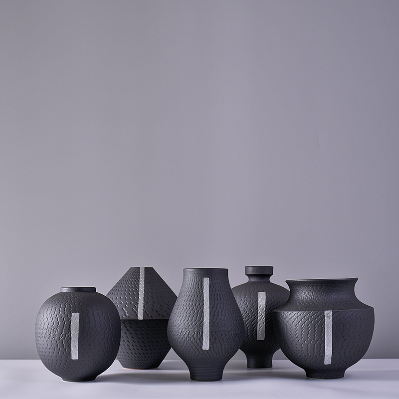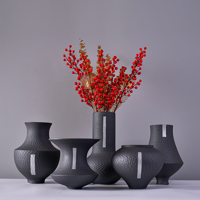 創意新中国式マットブラックストライプ陶磁器花器テレビ棚本棚装飾ホテル民宿置物卸売り