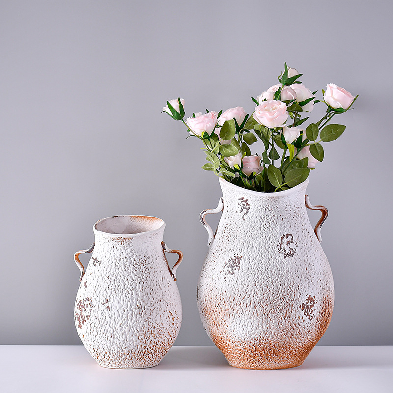 寂風双耳陶磁器花器新中国式現代シンプル茶卓テレビ棚玄関装飾工芸品