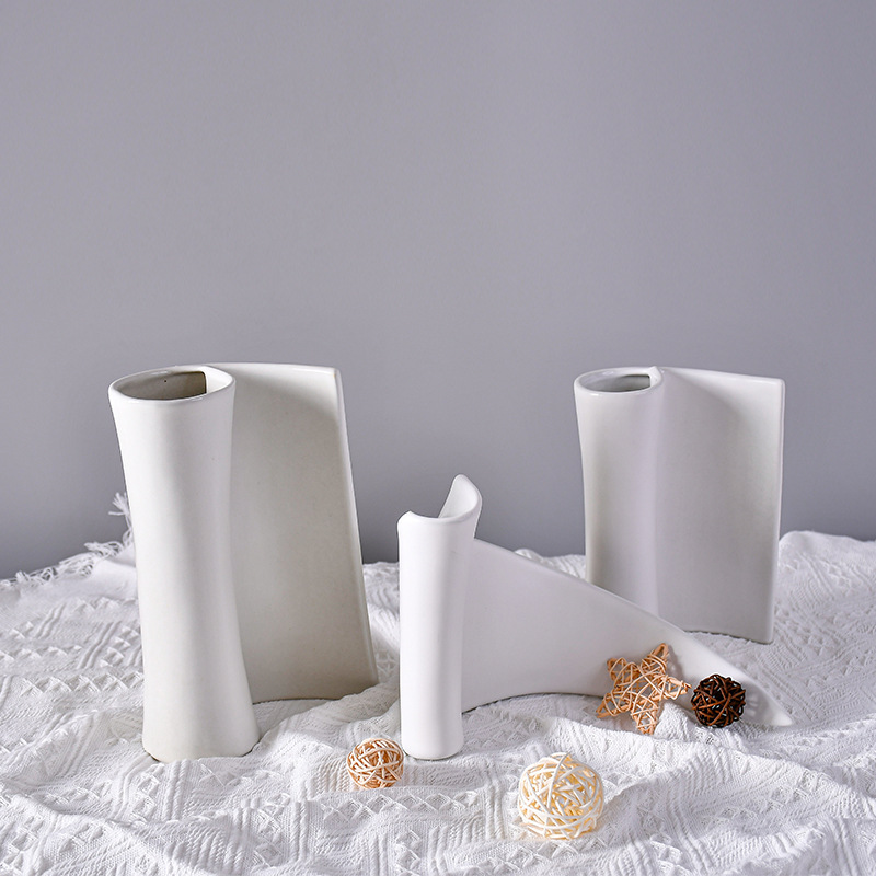 北欧抽象デザイン白色工芸陶磁器置物展示室装飾芸術品家庭用ソフト花瓶卸売り