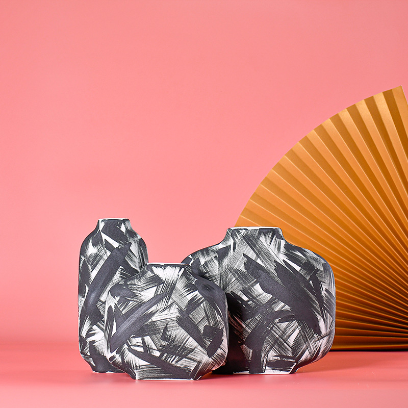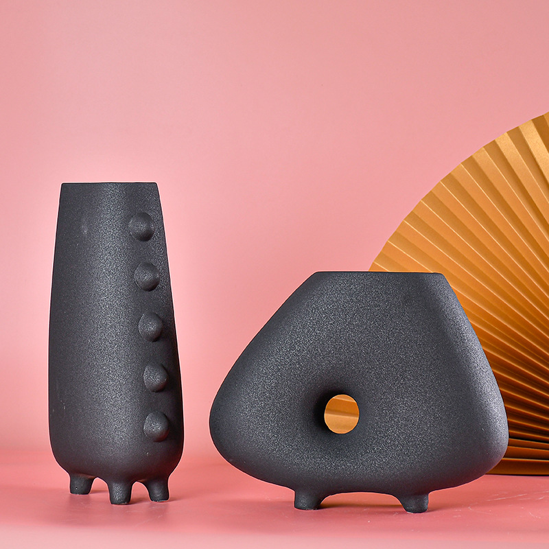 黒い陶磁器の花瓶北欧の創意的なシンプルなリビングルームの生け花の花の花の芸の置物の家庭の装飾品のテレビの棚