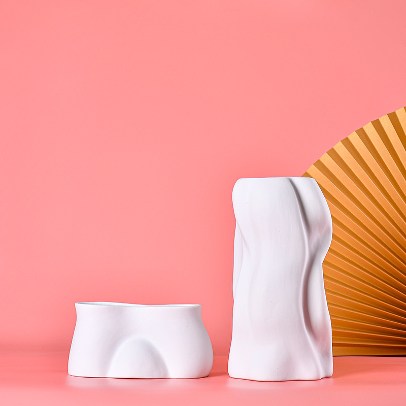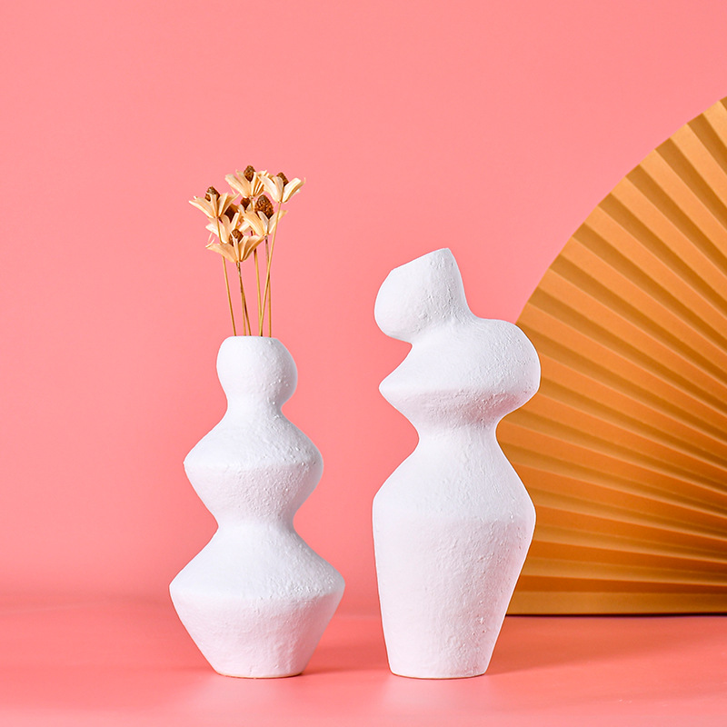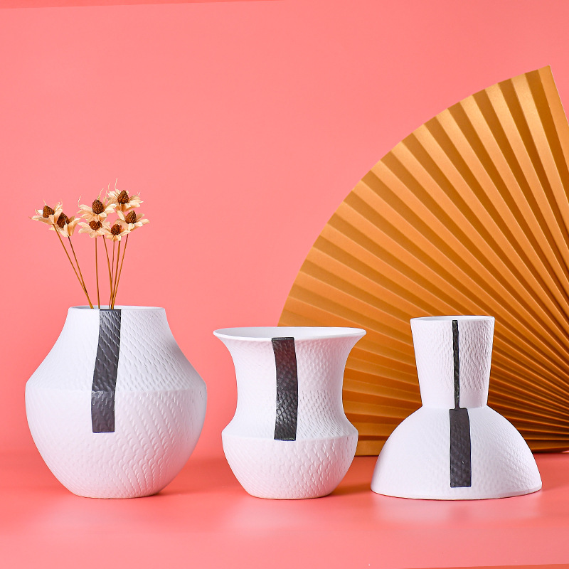 北欧のシンプルな陶磁器の花瓶の白いシリーズのアイデアのオリジナルの簡潔な乾いた花は家庭の客間の装飾品の置物を挿します。