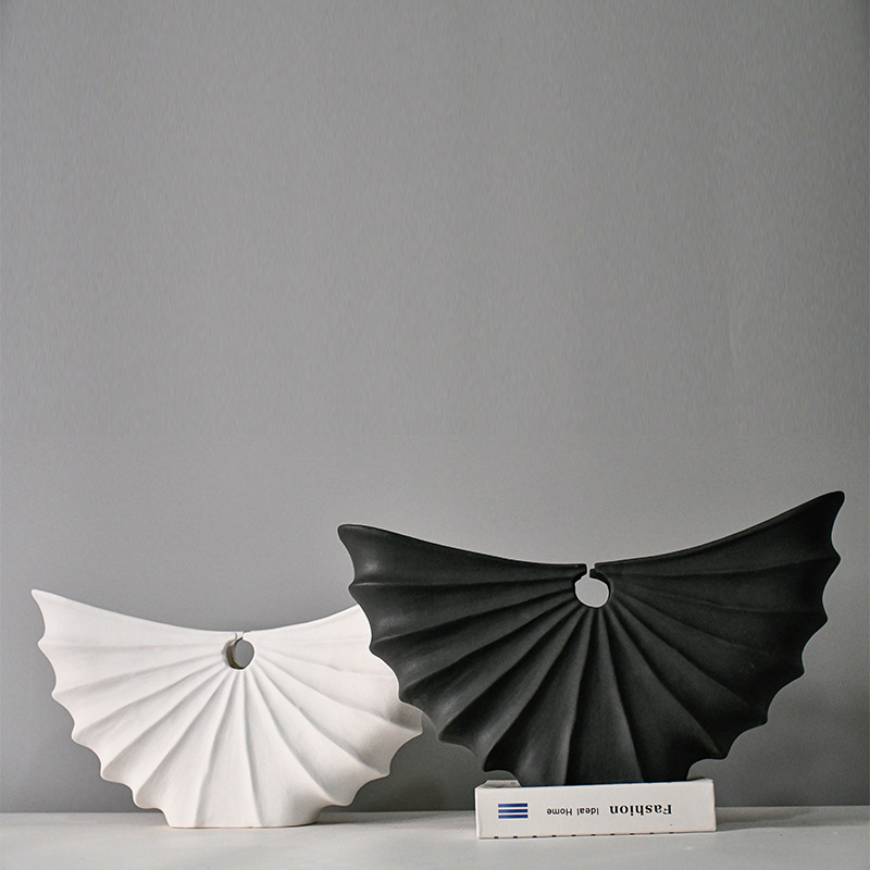 新しいモダンでシンプルな黒と白のホタテ貝の特殊な形のセラミック花器ホテルクラブリビングルーム玄関フラワーアレンジメント装飾装飾品