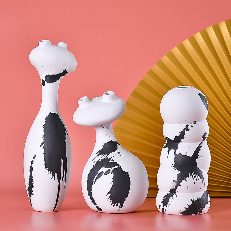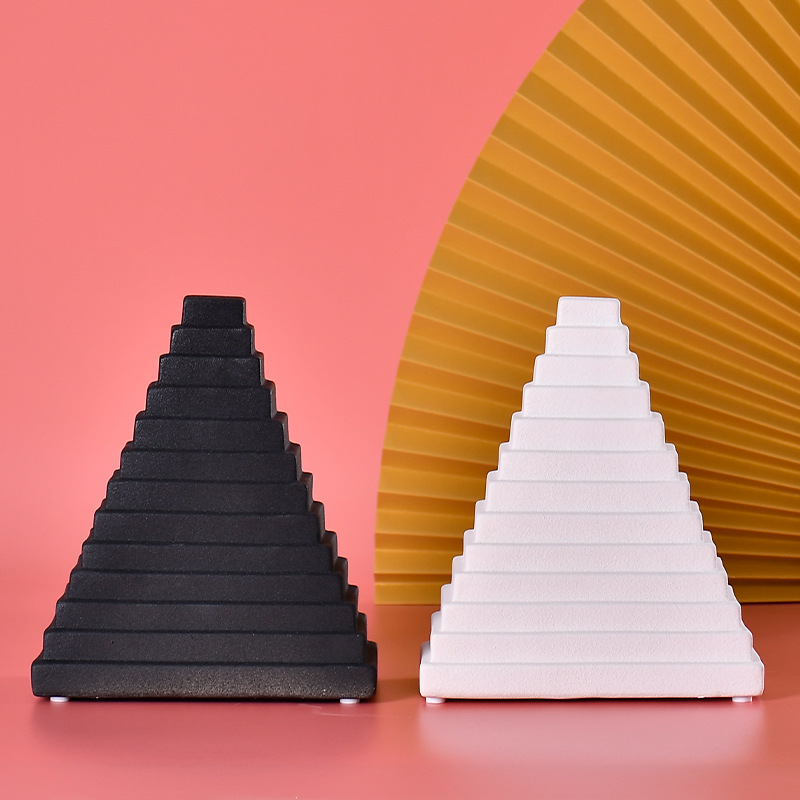 北欧シンプルな黒と白のピラミッド陶磁器の置物リビングの生け花器の食卓のテレビの箱のアイデアの花瓶の卸売り