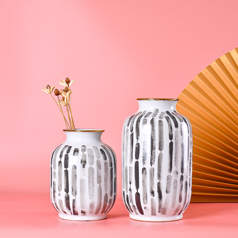 モダンなシンプルなクリエイティブセラミック花瓶置物リビングルーム生け花ドライフラワーテレビキャビネットモダンなシンプルなインテリア