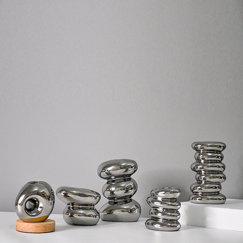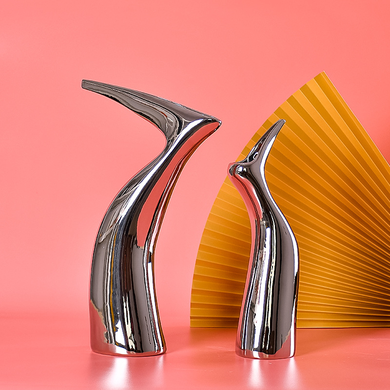 銀メッキの抽象的な創意的な形の陶磁器の置物はシンプルな家庭の書斎の茶室のデスクトップの生け花の水培の工芸の花瓶です。