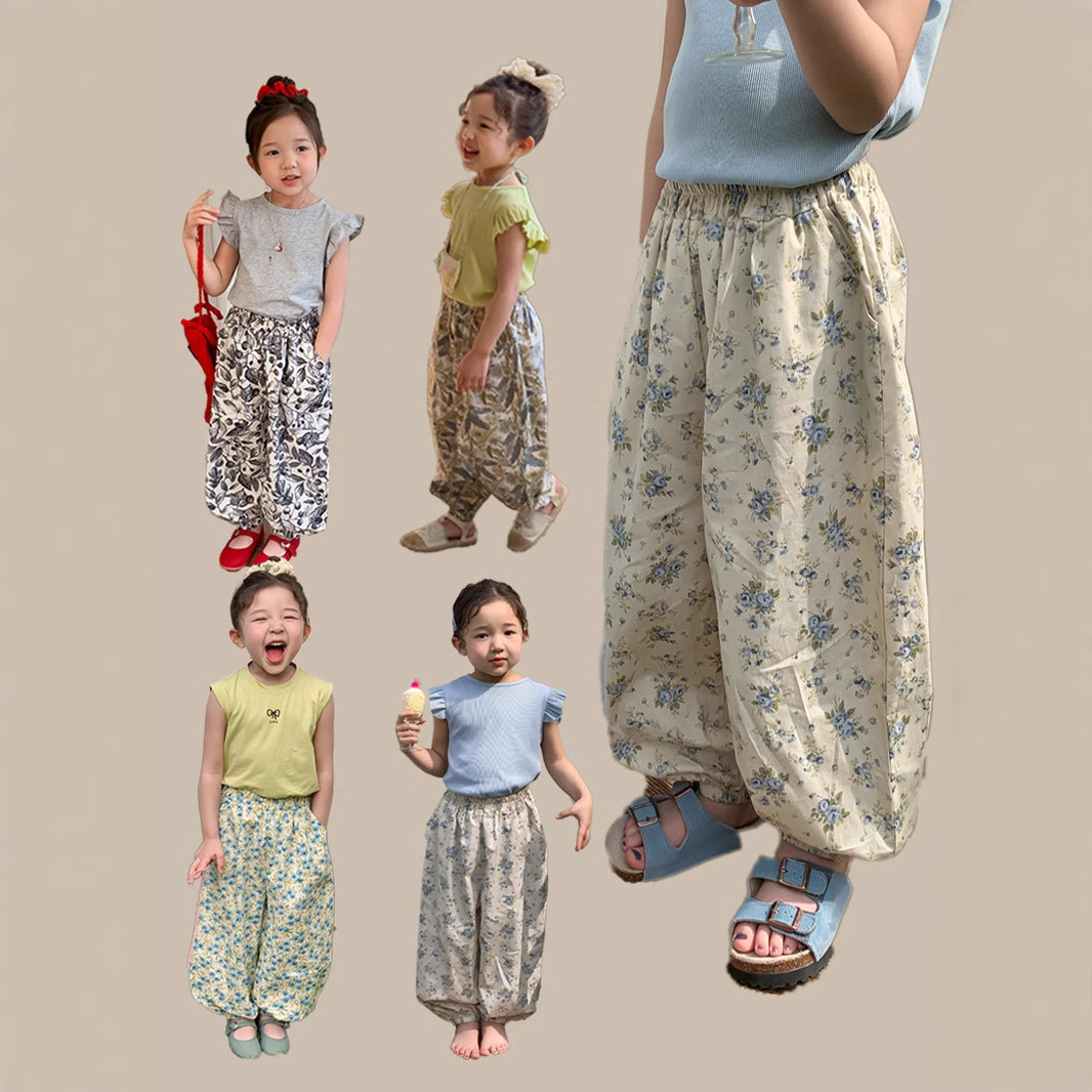 2025夏の新しい子供のカジュアルなズボンの洋風の花の工装のズボンの快適で柔らかい女の子の灯籠のズボン
