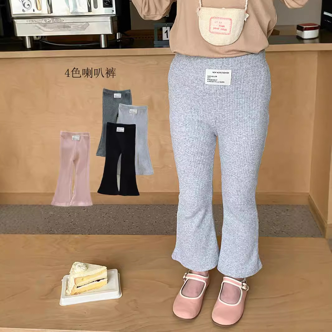 2025秋子供服新スタイル女の子秋ベルボトムレギンス子供9点ラベル外国風ピットストリップパンツ